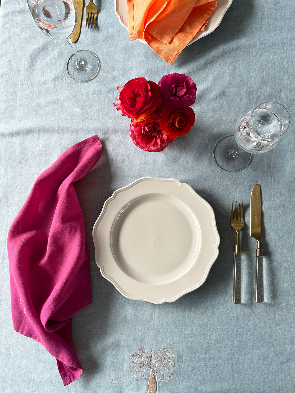 Table linen: Woven with 50% French linen, 50% cotton for a buttery-soft feel and flowing drape.
