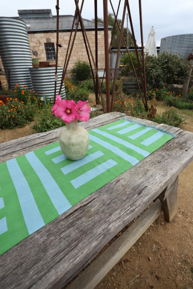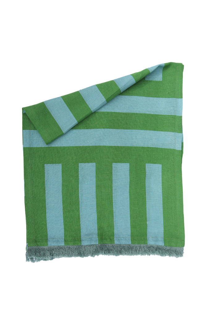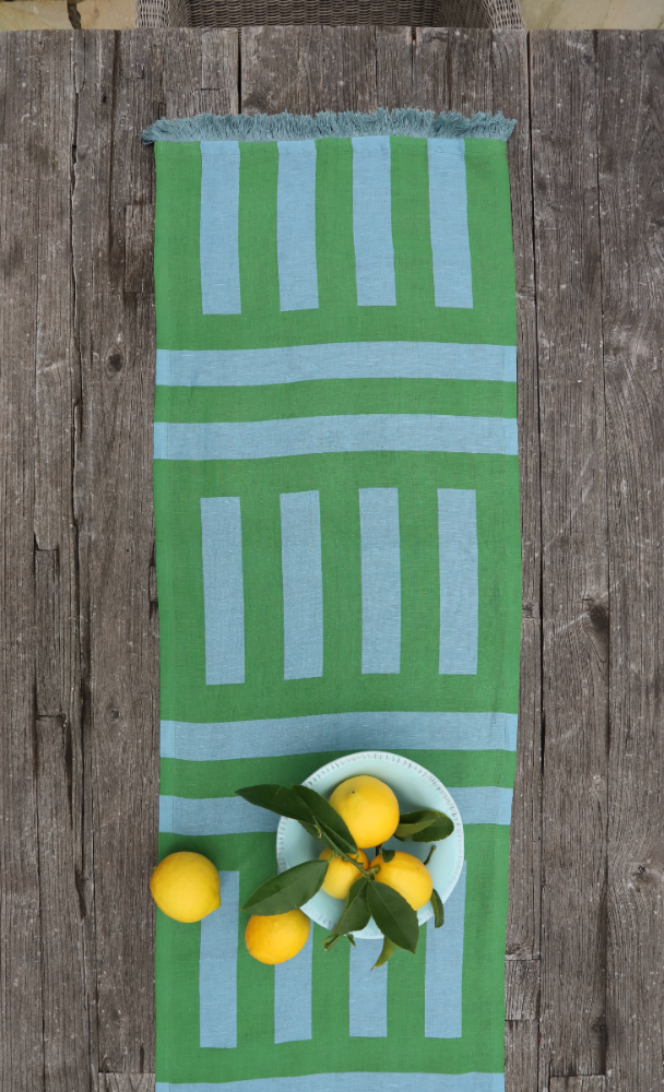 The Fruit Punch Table Runner, a summer staple for any table centrepiece. Featuring a geometric duo of colour, the runner is embellished with a coloured cotton fringe trim on either end. Crafted in a versatile 2-meter length, it effortlessly drapes across large tables be it round or rectangle. Designed to be paired back with matching print or plain napkin sets and crockery staples from the home. Made to mix and match.